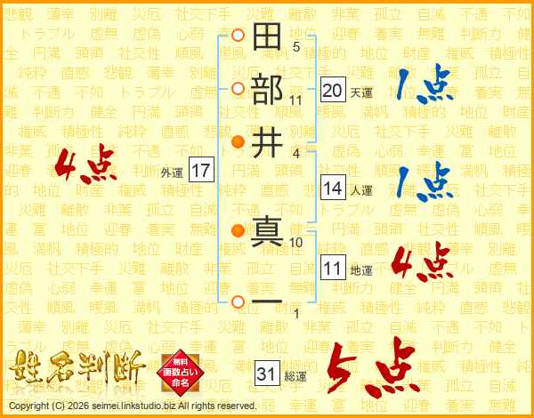 田(5画)部(11画)井(4画) 真(10画)一(1画)