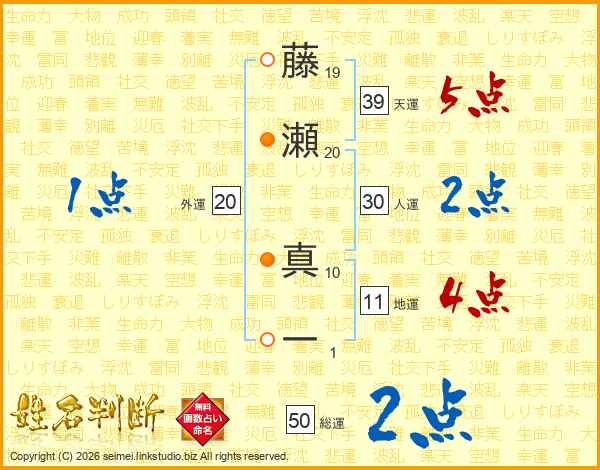 藤(19画)瀬(20画) 真(10画)一(1画)