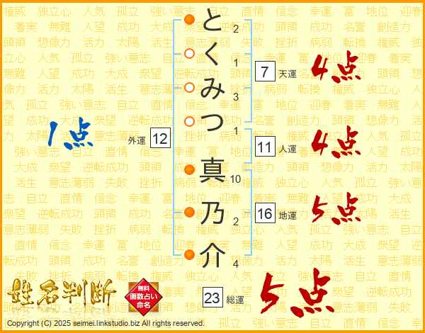と(2画)く(1画)み(3画)つ(1画) 真(10画)乃(2画)介(4画)