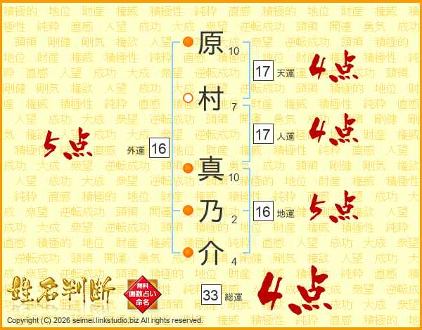 原村真乃介さんの総運は33画の4点!