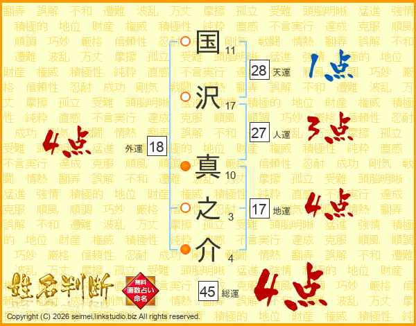 国沢真之介さんの総運は45画の4点!