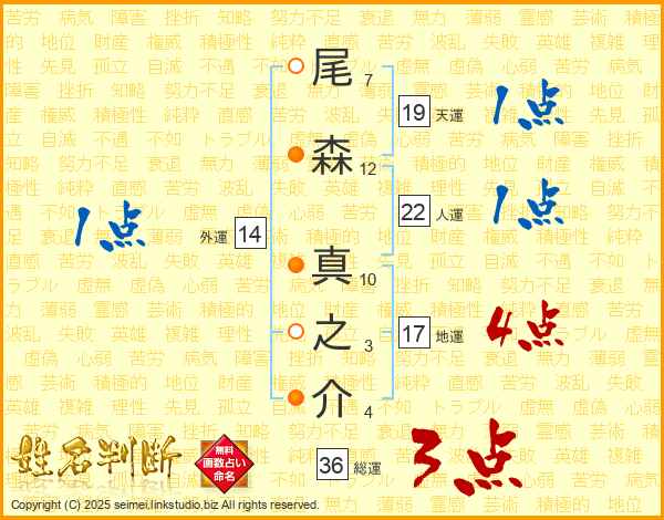 尾森真之介さんの天運は19画の1点!