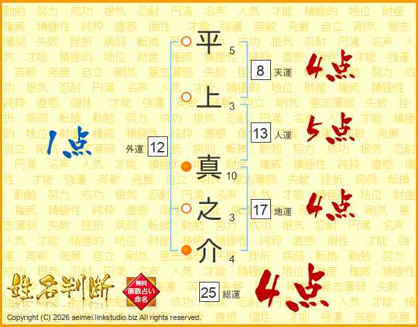 平上真之介さんの人運は13画の5点!