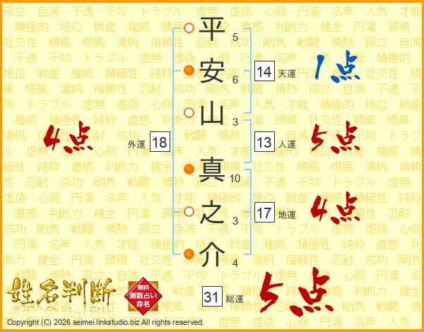 平安山真之介さんの外運は18画の4点!