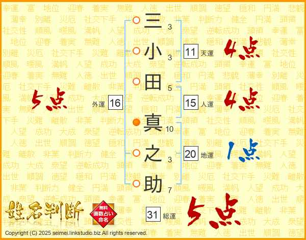 三(3画)小(3画)田(5画) 真(10画)之(3画)助(7画)