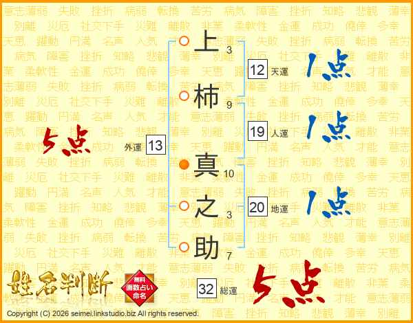 上(3画)柿(9画) 真(10画)之(3画)助(7画)