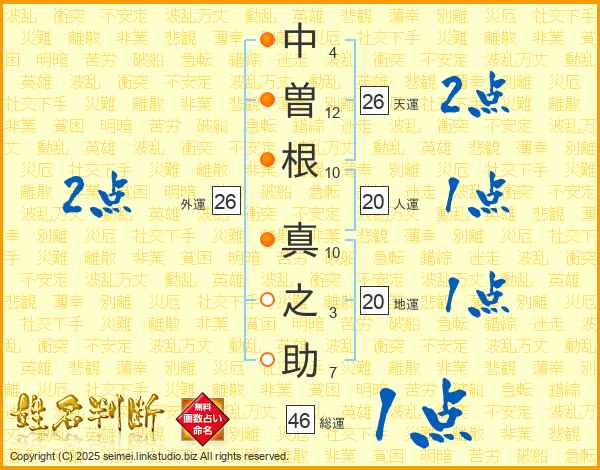 中曽根真之助さんの人運は20画の1点!