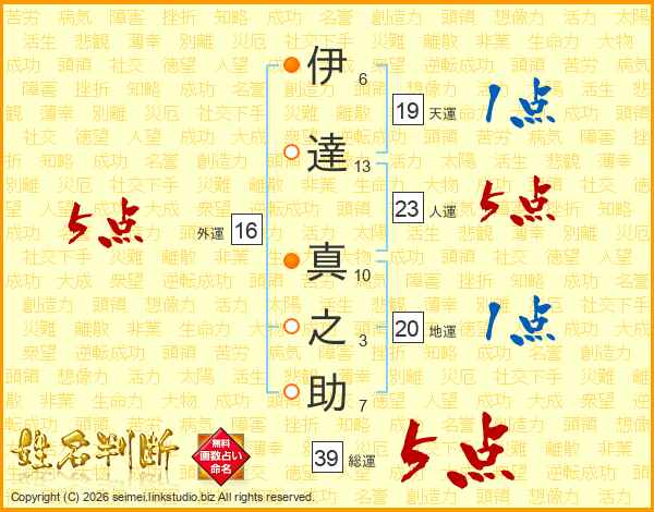 伊達真之助さんの総運は39画の5点!