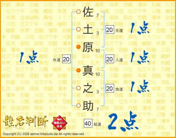 佐土原真之助さんの総運は40画の2点!
