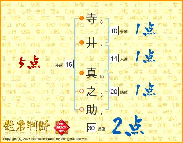 寺井真之助さんの総運は30画の2点!