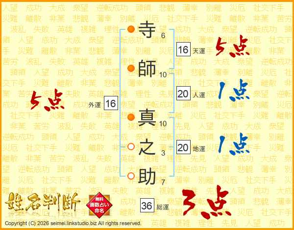 寺(6画)師(10画) 真(10画)之(3画)助(7画)
