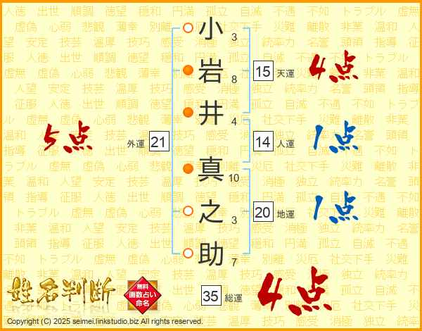 小(3画)岩(8画)井(4画) 真(10画)之(3画)助(7画)