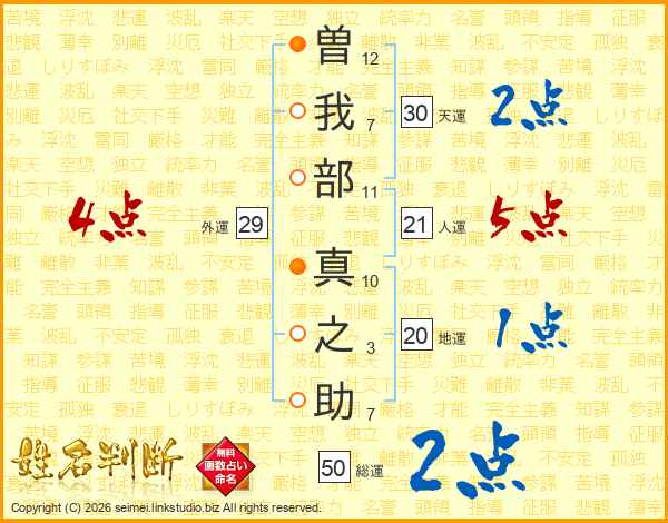 曽我部真之助さんの天運は30画の2点!
