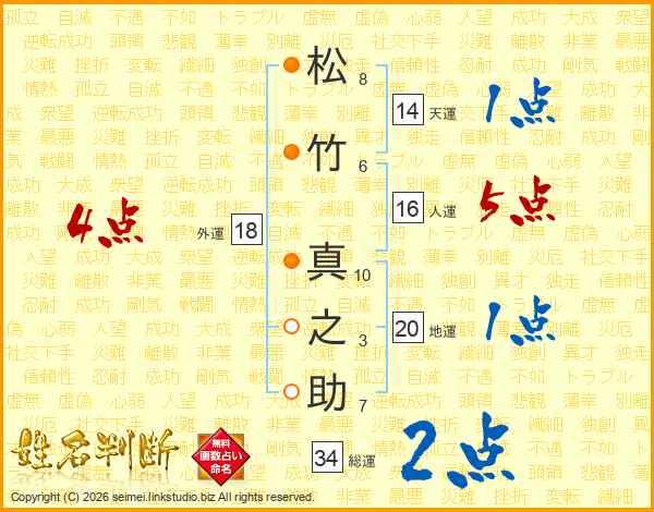 松竹真之助さんの総運は34画の2点!