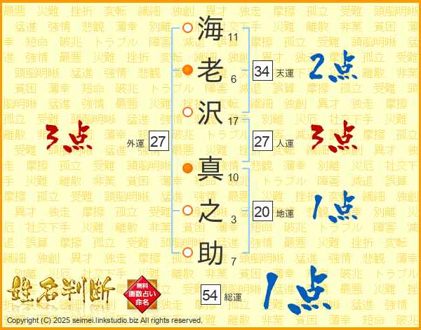 海(11画)老(6画)沢(17画) 真(10画)之(3画)助(7画)