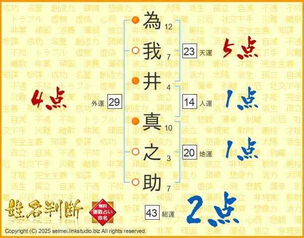 為(12画)我(7画)井(4画) 真(10画)之(3画)助(7画)