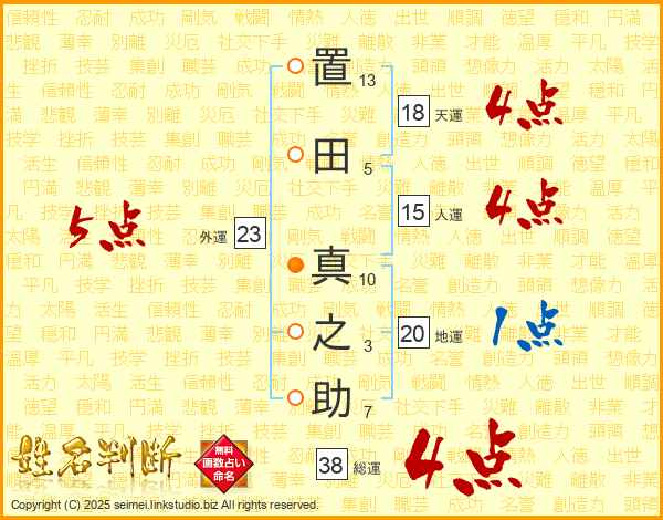 置(13画)田(5画) 真(10画)之(3画)助(7画)