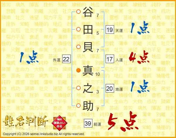 谷田貝真之助さんの総運は39画の5点!