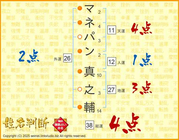 マネパン真之輔さんの総運は38画の4点!
