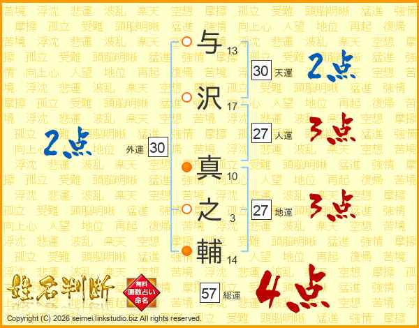 与(13画)沢(17画) 真(10画)之(3画)輔(14画)