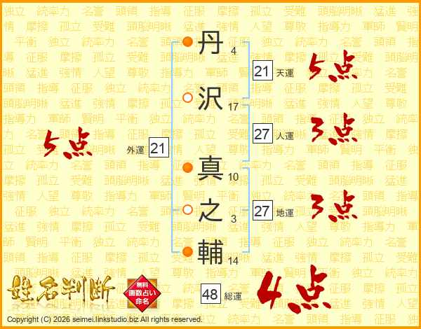 丹沢真之輔さんの総運は48画の4点!