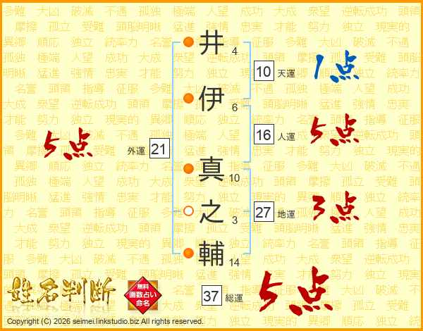 井(4画)伊(6画) 真(10画)之(3画)輔(14画)