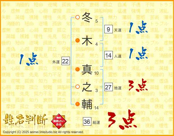 冬木真之輔さんの総運は36画の3点!