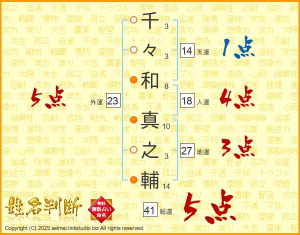 千(3画)々(3画)和(8画) 真(10画)之(3画)輔(14画)