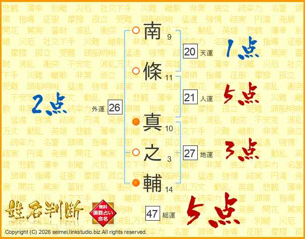 南條真之輔さんの総運は47画の5点!