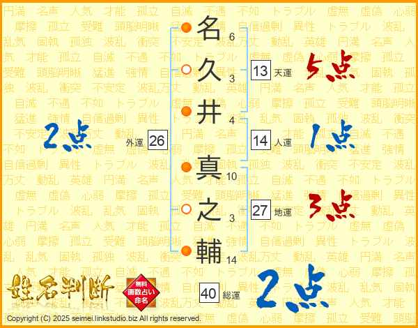 名(6画)久(3画)井(4画) 真(10画)之(3画)輔(14画)