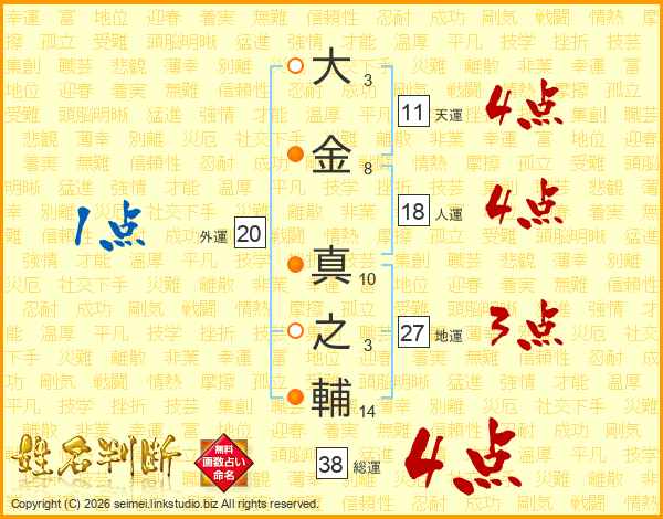 大金真之輔さんの総運は38画の4点!