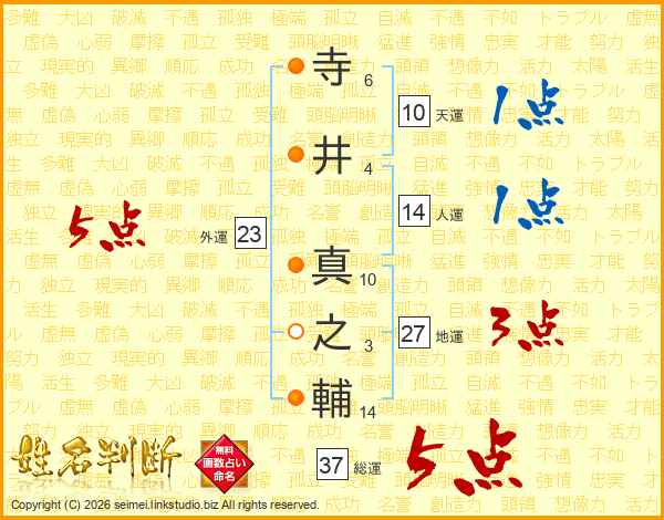 寺井真之輔さんの総運は37画の5点!