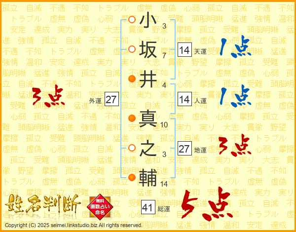 小(3画)坂(7画)井(4画) 真(10画)之(3画)輔(14画)