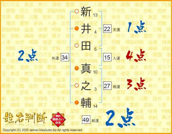 新井田真之輔さんの総運は49画の2点!