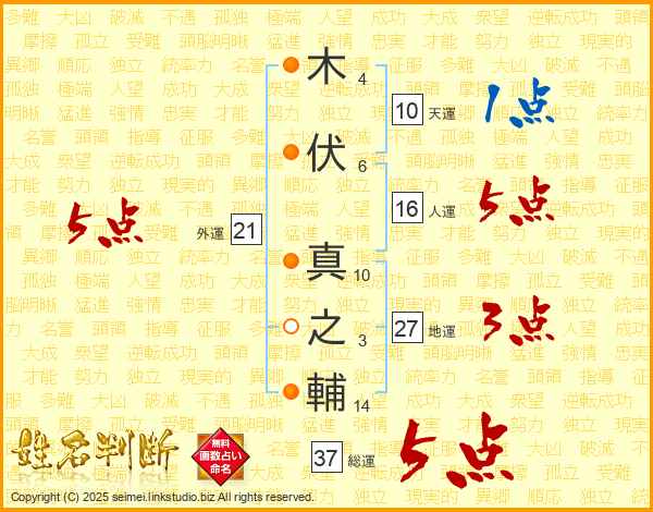 木(4画)伏(6画) 真(10画)之(3画)輔(14画)