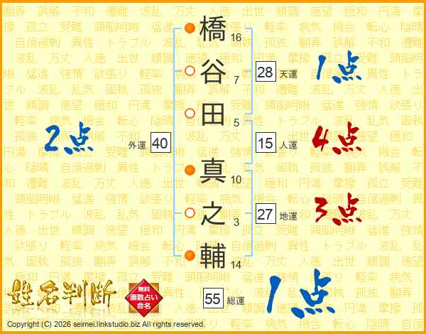 橋谷田真之輔さんの人運は15画の4点!
