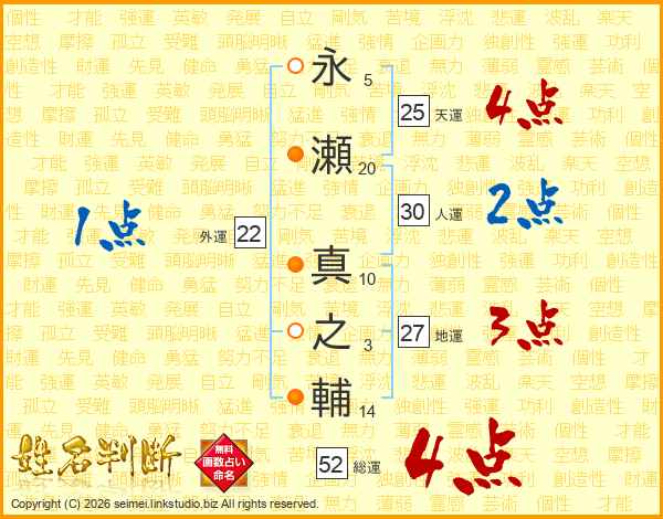 永(5画)瀬(20画) 真(10画)之(3画)輔(14画)