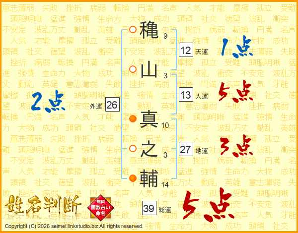 穐(9画)山(3画) 真(10画)之(3画)輔(14画)
