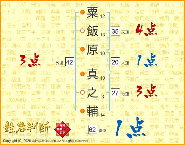 粟飯原真之輔さんの天運は35画の4点!