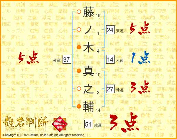 藤ノ木真之輔さんの外運は37画の5点!