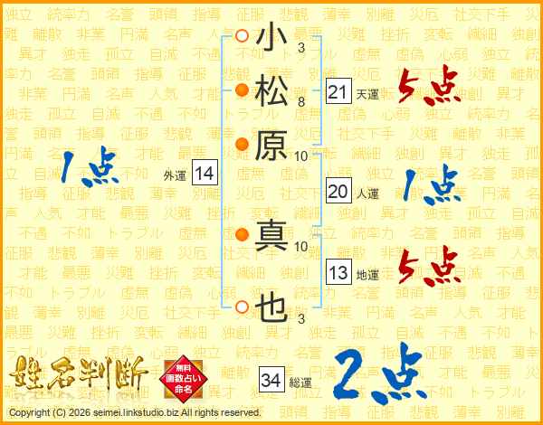 小(3画)松(8画)原(10画) 真(10画)也(3画)