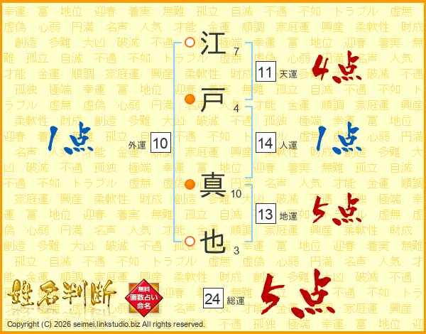 江(7画)戸(4画) 真(10画)也(3画)