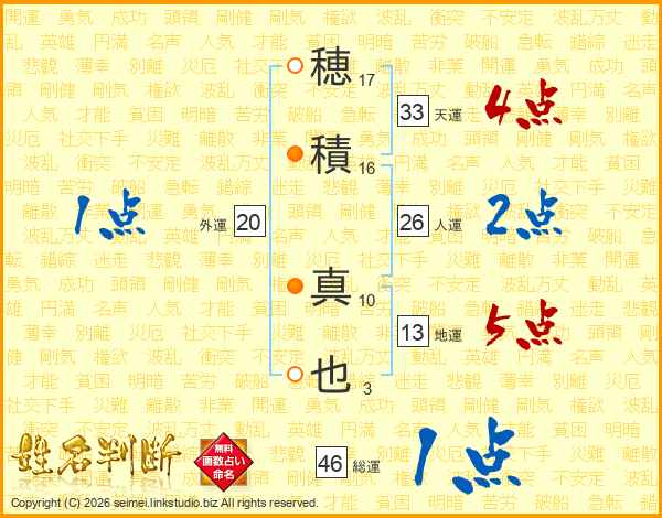 穂(17画)積(16画) 真(10画)也(3画)