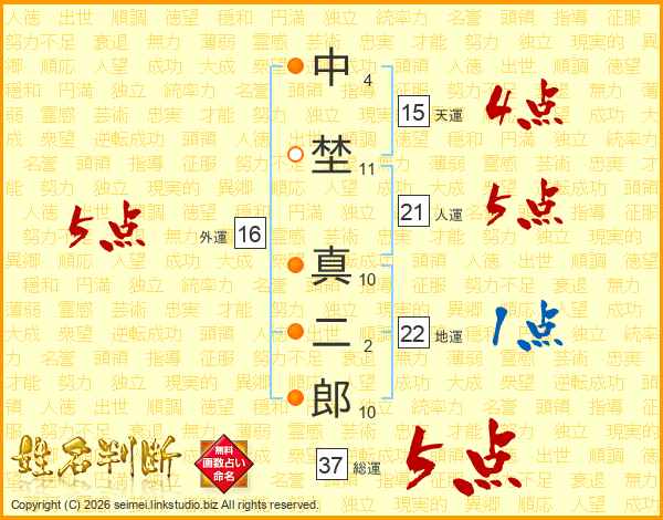 中埜真二郎さんの総運は37画の5点!
