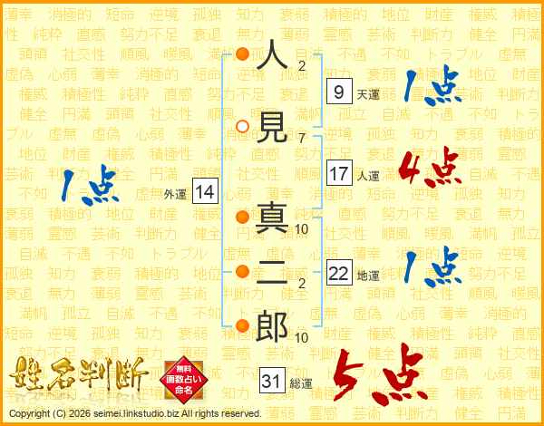 人見真二郎さんの総運は31画の5点!
