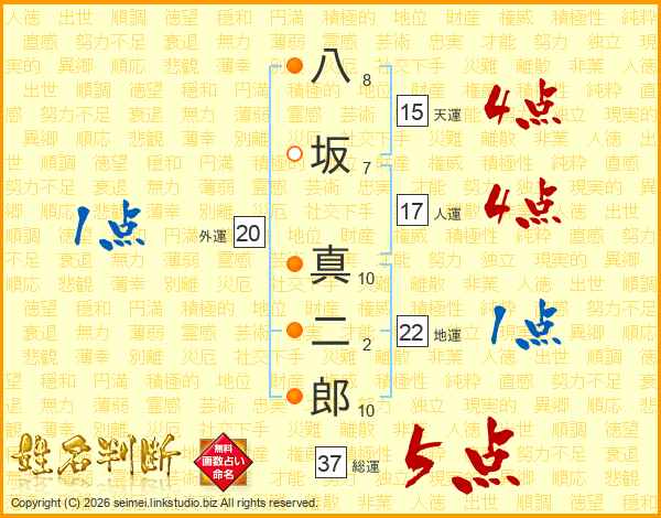 八坂真二郎さんの総運は37画の5点!