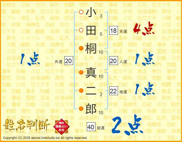 小田桐真二郎さんの総運は40画の2点!