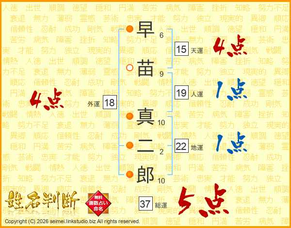 早苗真二郎さんの総運は37画の5点!