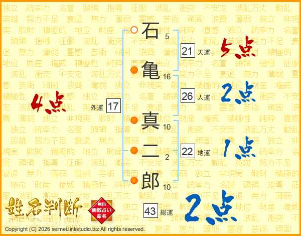 石亀真二郎さんの人運は26画の2点!