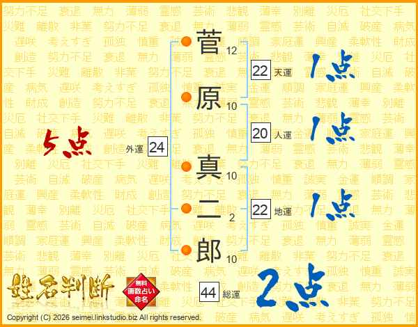 菅原真二郎さんの総運は44画の2点!